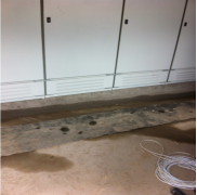 4配電間配電柜前未墊絕緣墊,屋頂下有空洞,電線洞未封堵,無滅火器和應急燈配電間配電柜前已墊絕緣墊,屋頂下空洞已封堵,電線洞已封堵,已增設二只4kg二氧化碳滅火器和應急燈